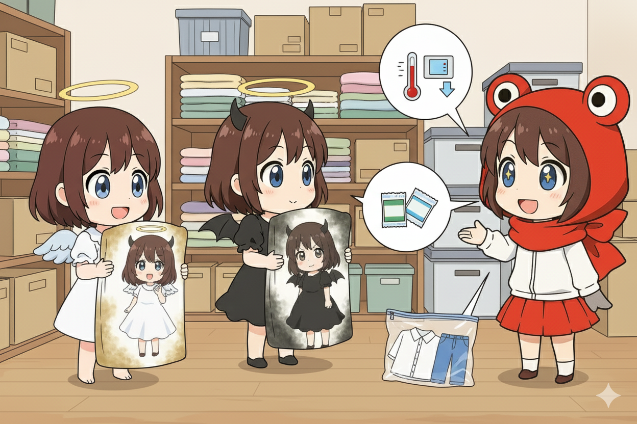 特に高温多湿な梅雨から夏にかけては、締め切りにせず、エアコンや除湿機を効果的に活用して、室温を低めにコントロールしましょう。温度管理は、衣替え後の衣類を守るための最初の砦ですよ!